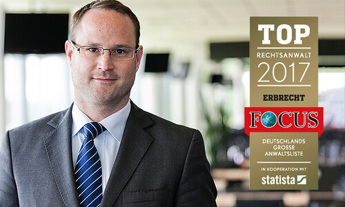 Herr Rechtsanwalt Mörschner wurde in einer bundesweiten Umfrage unter 26.000 Rechtsanwälten/innen, die im Auftrag von FOCUS seit mehreren Jahren durchgeführt wird, für das Rechtsgebiet Erbrecht für die Liste Top-Rechtsanwalt Deutschland gewählt. Die Befragten konnten für verschiedene Fachgebiete Kollegen außerhalb der eigenene Kanzlei empfehlen, die sich ihrer Meinung nach durch hohe Kompetenz und Erfahrung auszeichnen. Die Auswahl der Rechtsanwälte in die Top-Listen erfolgte über die Häufigkeit der Kollegenempfehlung.
